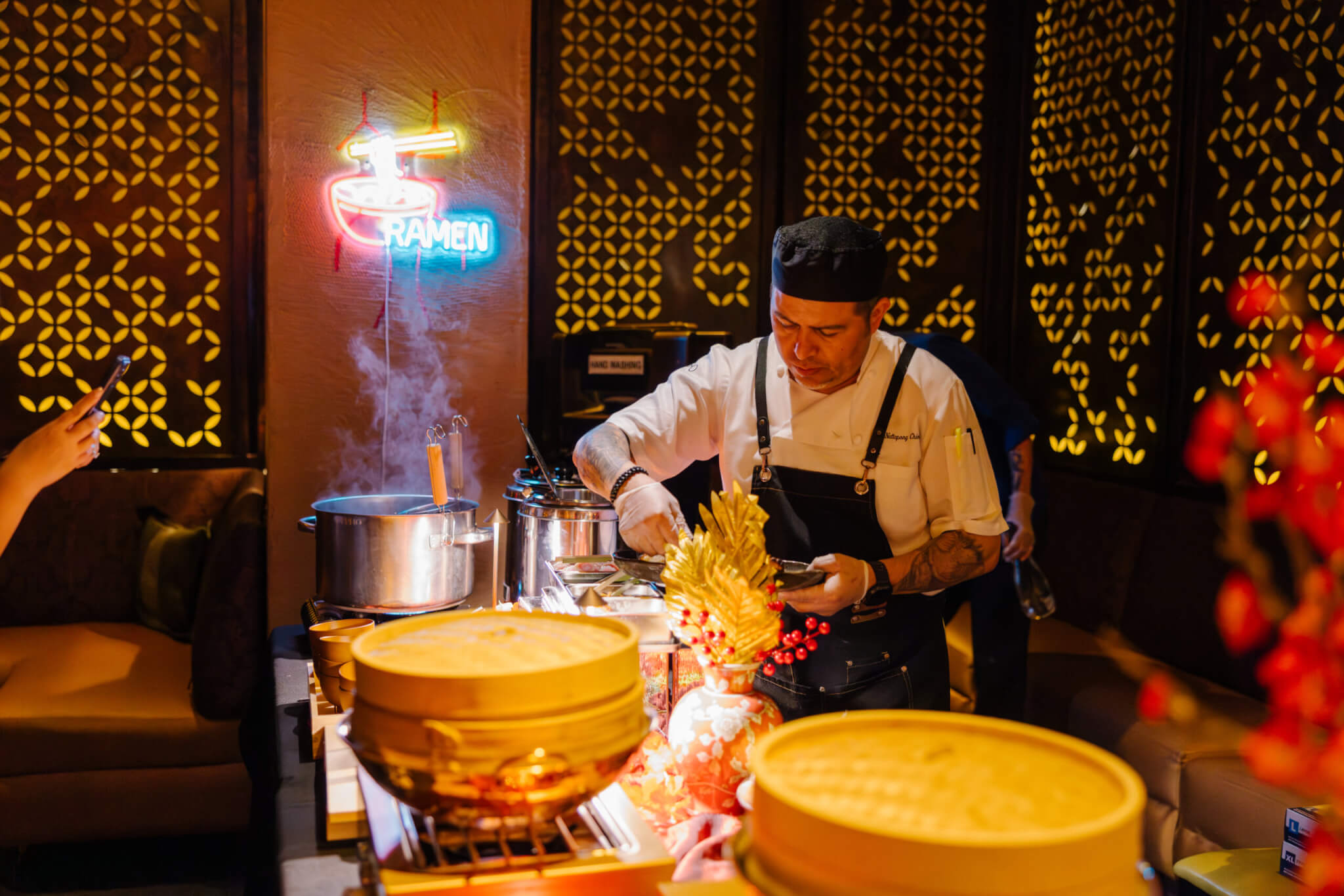 Step into an unlimited world of Asian-inspired brunch dishes each week at Endless Buffet Brunch. Start your journey at our raw bar, featuring sashimi, nigiri, and oysters. Next, stop by our hot food stations, boasting made-to-order breakfast bao buns, freshly carved pork belly, wagyu sliders, and more. Followed by customizing a personal bowl of ramen to your liking at our dedicated ramen bar. Lastly, explore an immense selection of desserts, such as donuts, croissants, and macarons, all waiting to be dipped in our chocolate fountain. If you’re looking to elevate your meal, TAO signatures, like Spicy Tuna Tartare on Crispy Rice, are available to order for an additional cost.